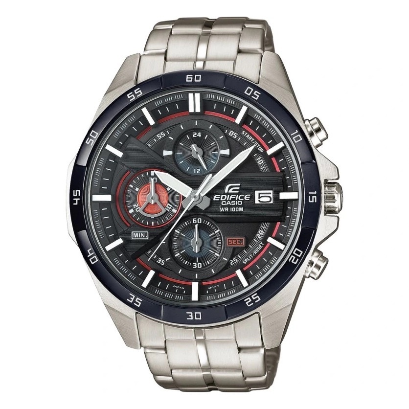 Strieborno-čierne pánske hodinky Casio Edifice. Sú veľké a elegantné. Ich strieborný remienok z oceli sa napojuje na robustné puzdro z oceli. Tieto hodinky s quartz strojčekom sú jednoducho kvalitným módnym doplnkom. Sú vodeodolné do 10 ATM. Môžete s nimi plávať a dokonca sa aj potápať.